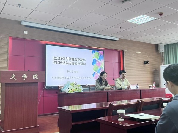 11月16日下午,中南财经政法大学新闻与文化传播学院院长余秀才教授应邀在人文楼A座602会议室为我院师生作了题为《社交媒体时代社会突发事件的网络舆论传播与引导》专题讲座。本次讲座由学院新闻系陈欢老师主持,bevictor伟德官网党委书记车录彬,相关专业教师、研究生及本科生参加。