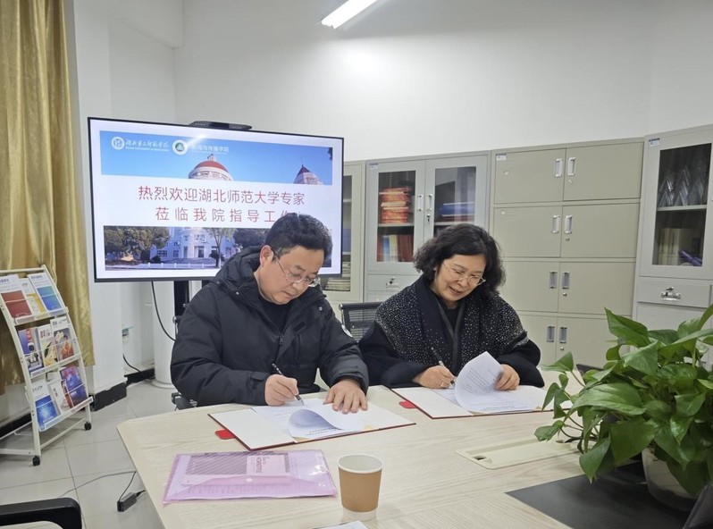 12月10日,为推动院校间交流合作与学科发展,bevictor伟德官网院长李治平、副院长彭江浩及教师陈欢、彭静一行,前往湖北第二师范学院新闻与传播学院交流学习,并就两院研究生联合培养签订协议。