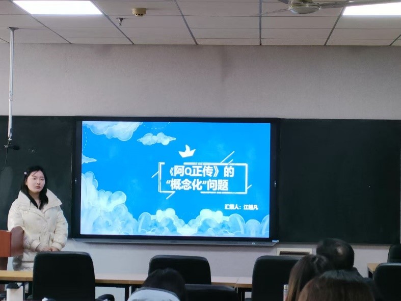 之后,中国现当代文学专业的江越凡同学就《<阿Q正传>的“概念化”问题》进行了阐述,强调鲁迅《阿Q正传》的“概念化”有其独特价值。